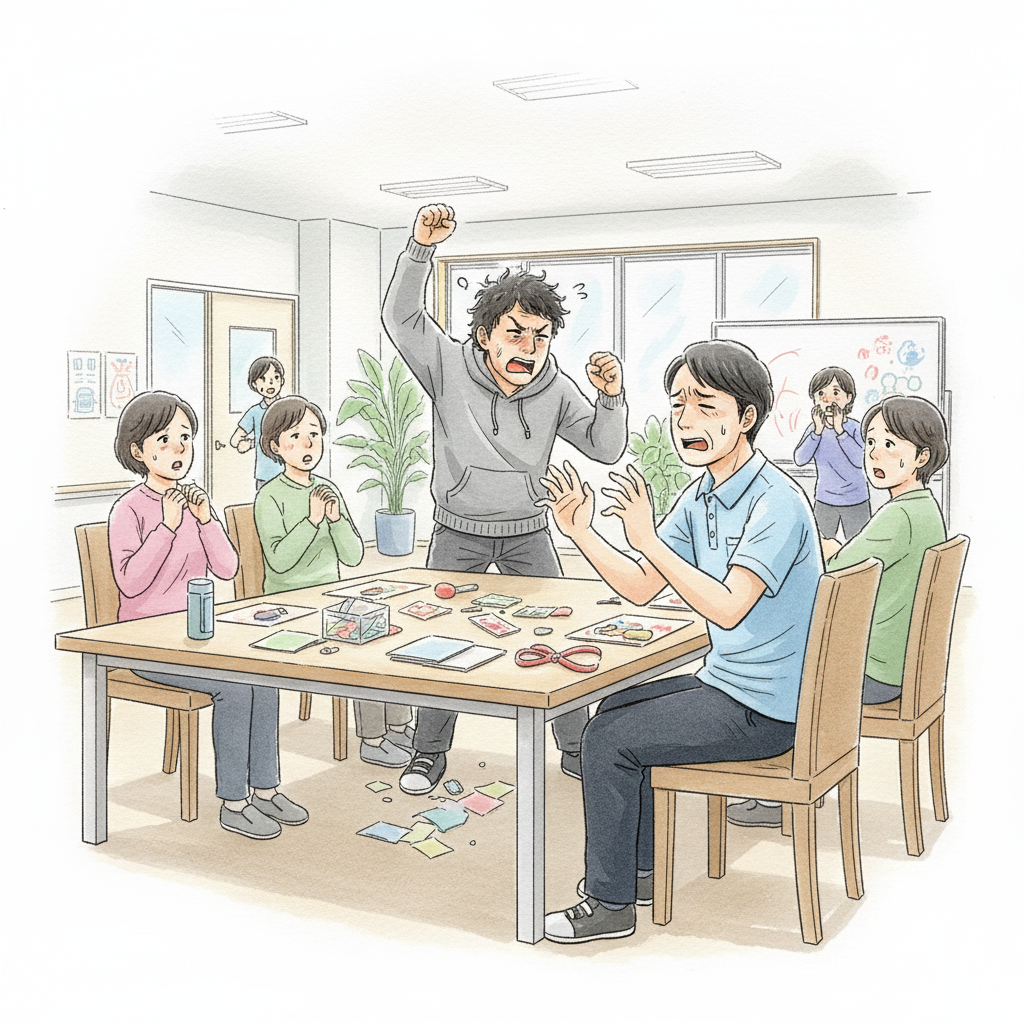 作業中に突然無関係なことをやったり暴力的な態度を取って周囲の人を不快にすることがあります。